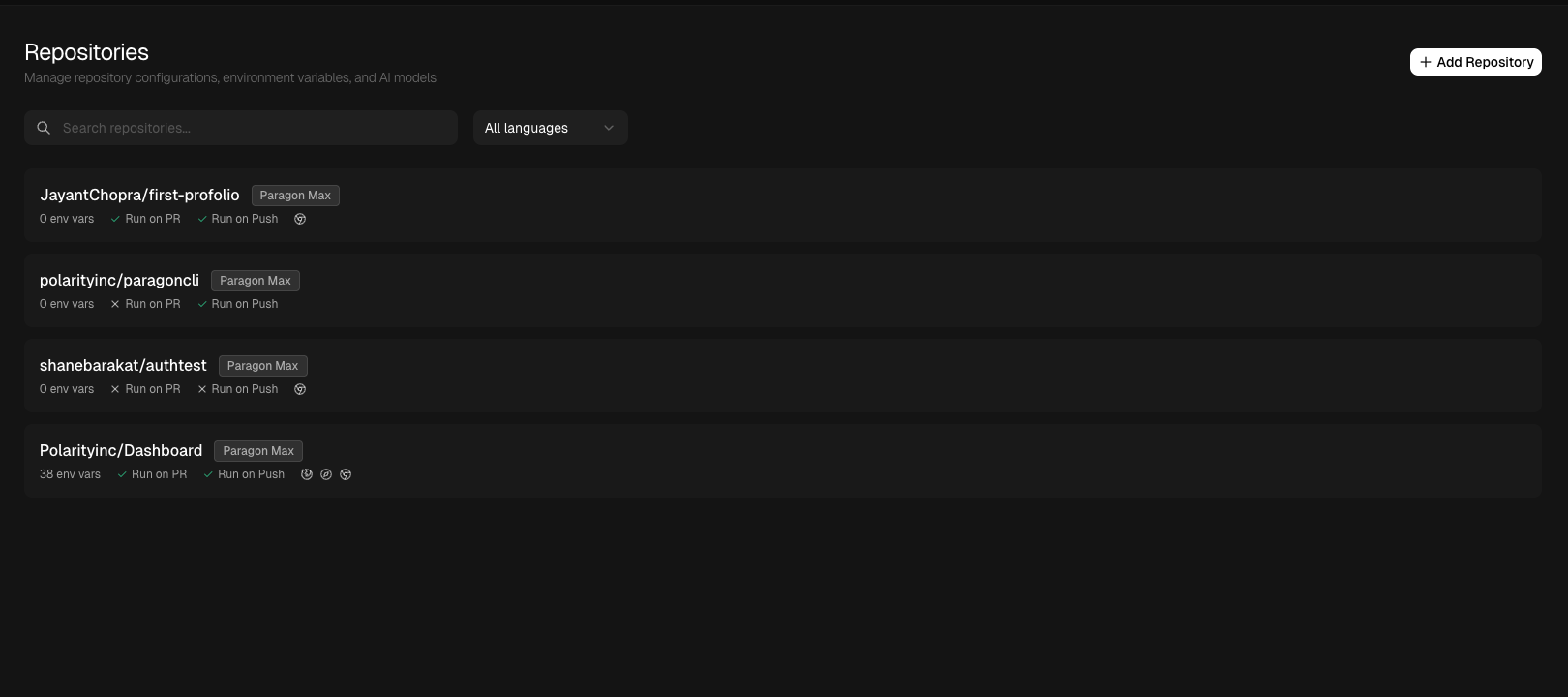 Click on any repository to update its settings.